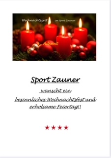 Sport Zauner wünscht ein besinnliches Weihnachtsfest und erholsame Feiertage!!